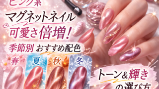 ピンク系マグネットネイルで可愛さ倍増|季節別おすすめ配色が気になっている方は、「どんな色の組み合わせが一番可愛いの?」「季節ごとに浮かない配色は?」と悩んでいませんか。